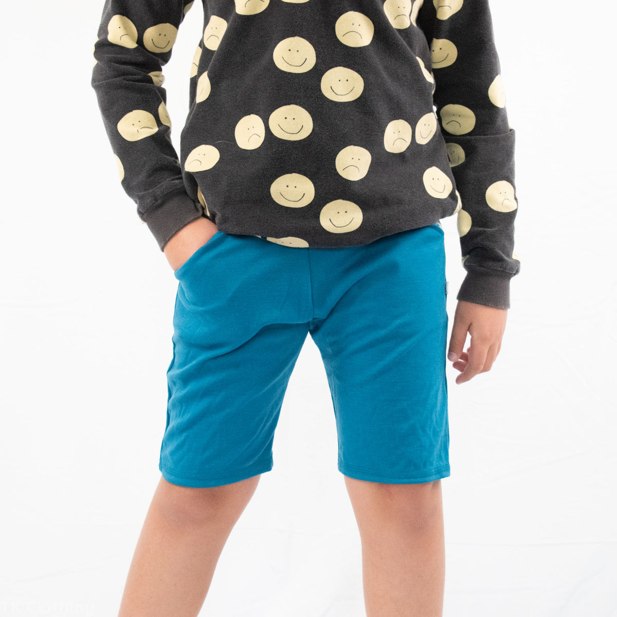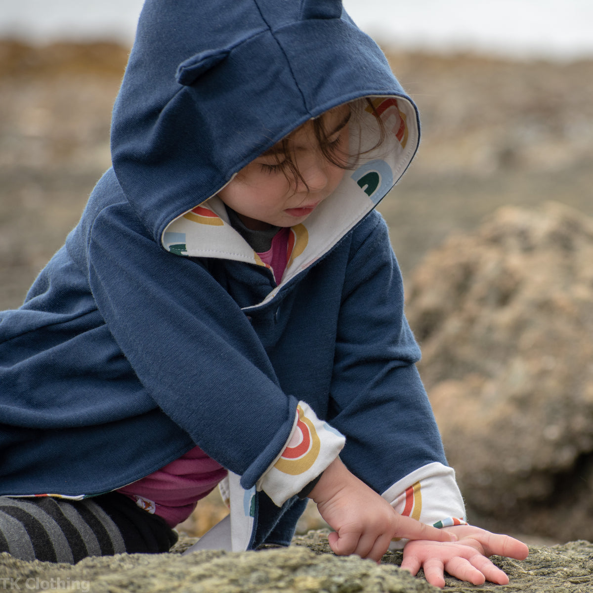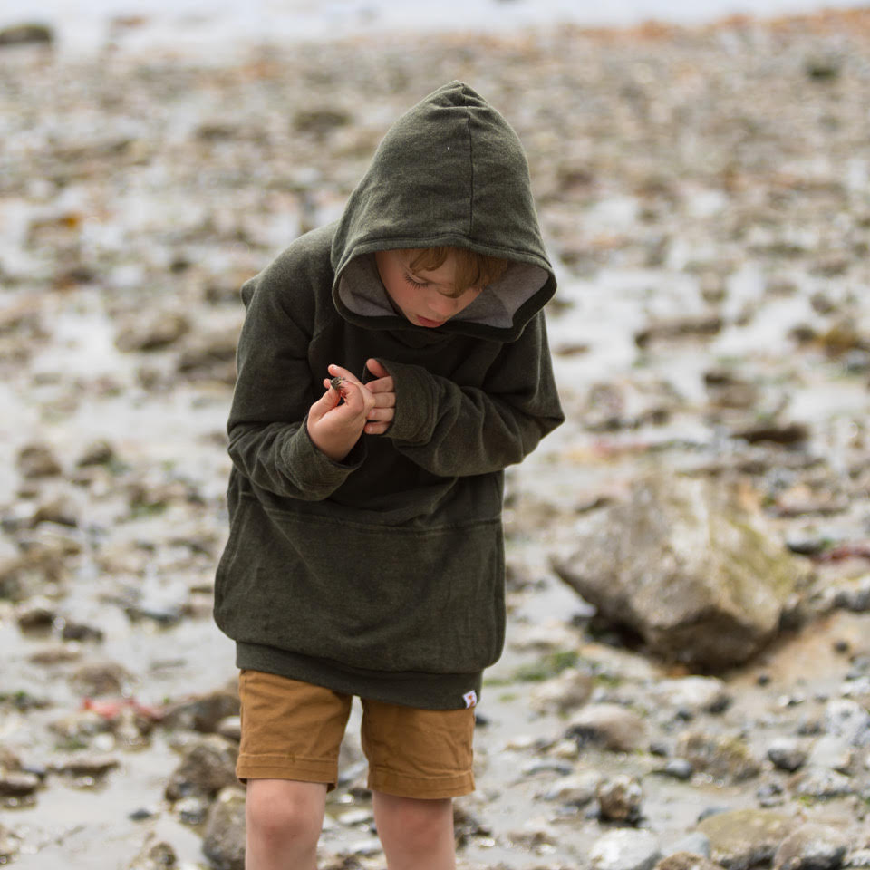 Kid factor is pretty good - TK loved his dungarees when he was small, and his shawl collar sweater. But as he grew, he changed and became more sensitive - so now he loves his merino wool pocket pants from this, but really doesn't like the shawl collar next to his neck. Which is how the East Coast Merino Hoodies were born - the tighter next to skin parts (cuffs and hood lining) are all organic cotton which he loves. Probably why he loves the pocket pants as well - waist and cuffs are organic cotton. EK is a big fan of her Reversible Jacket!